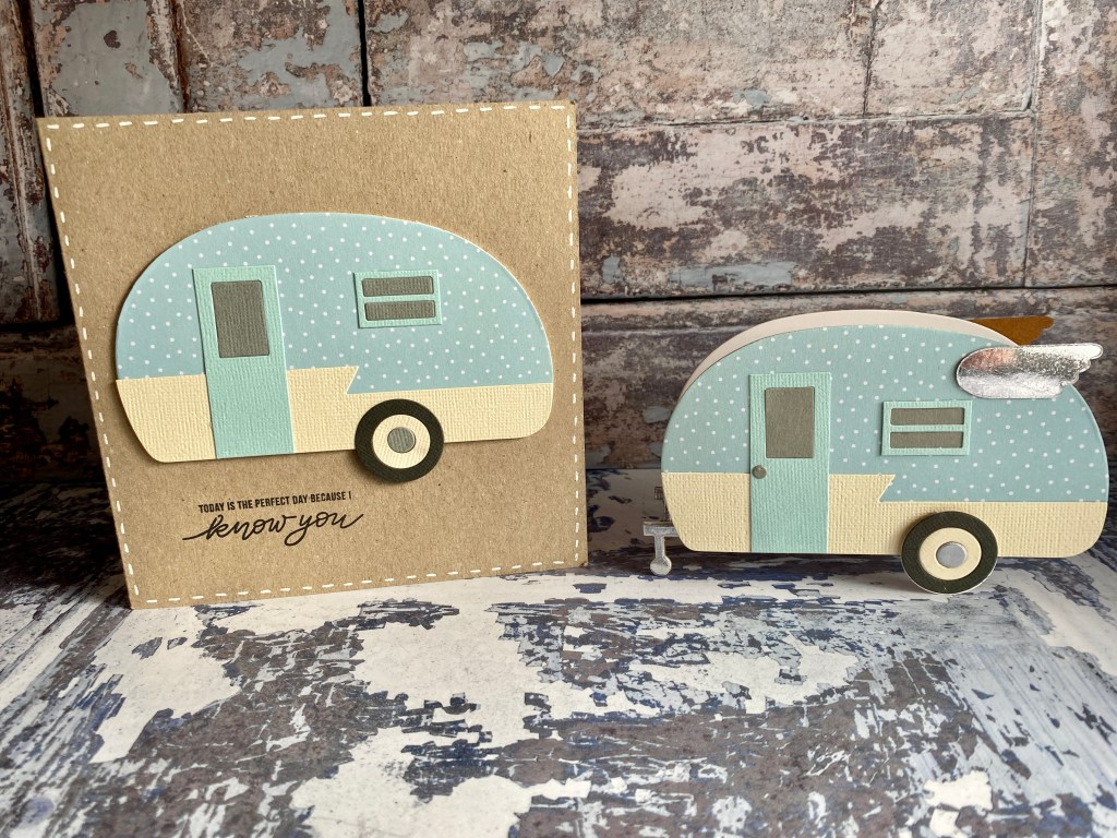 Next is the very fun, Camper die, this creates such a cute 3D camper, that has a kind of box inside, that you can use to add a gift. Of course, you can also use the camper element without making it into the full 3D version, it looks fabulous on a card or journal front.
