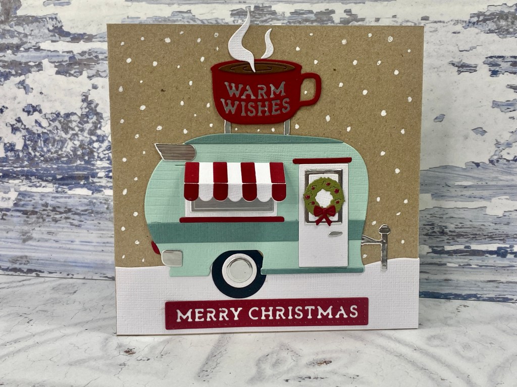 So let me share my project for the blog hop. I used the new Camper Life die set to create this fun Christmas card (this set is available from 14 August, so you’ll find it in the coming soon section of the website).