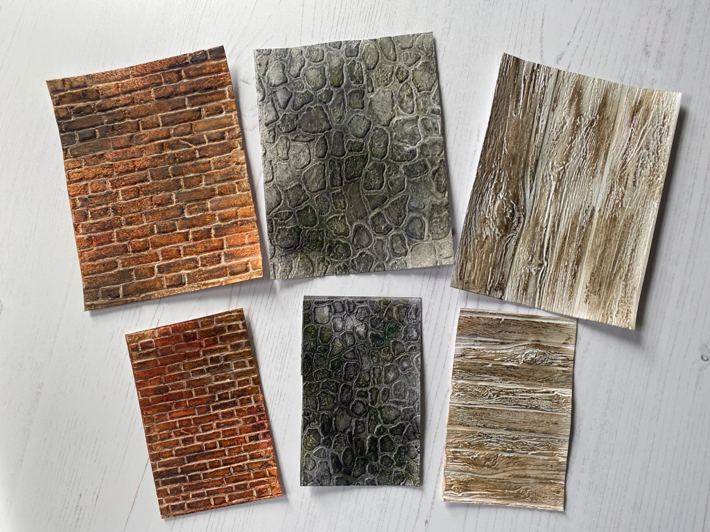 There are also 3 embossing folders designed to work well with this collection, and they are miniature versions of previous embossing folders – Brickwork, Lumber and Cobblestone.